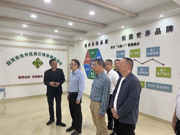 在貢井區(qū)成佳鎮(zhèn)楊柳供銷合作社,劉羽一行重點了解合作社運營管理模式、參與“大頭菜+高粱”輪作試驗示范基地建設(shè)、建立“235”市場化運營激勵機制、培育“龍須淡口”精品品牌、帶動群眾增收等方面的主要做法,深入探討交流基層社業(yè)務(wù)發(fā)展定位、為農(nóng)服務(wù)模式。